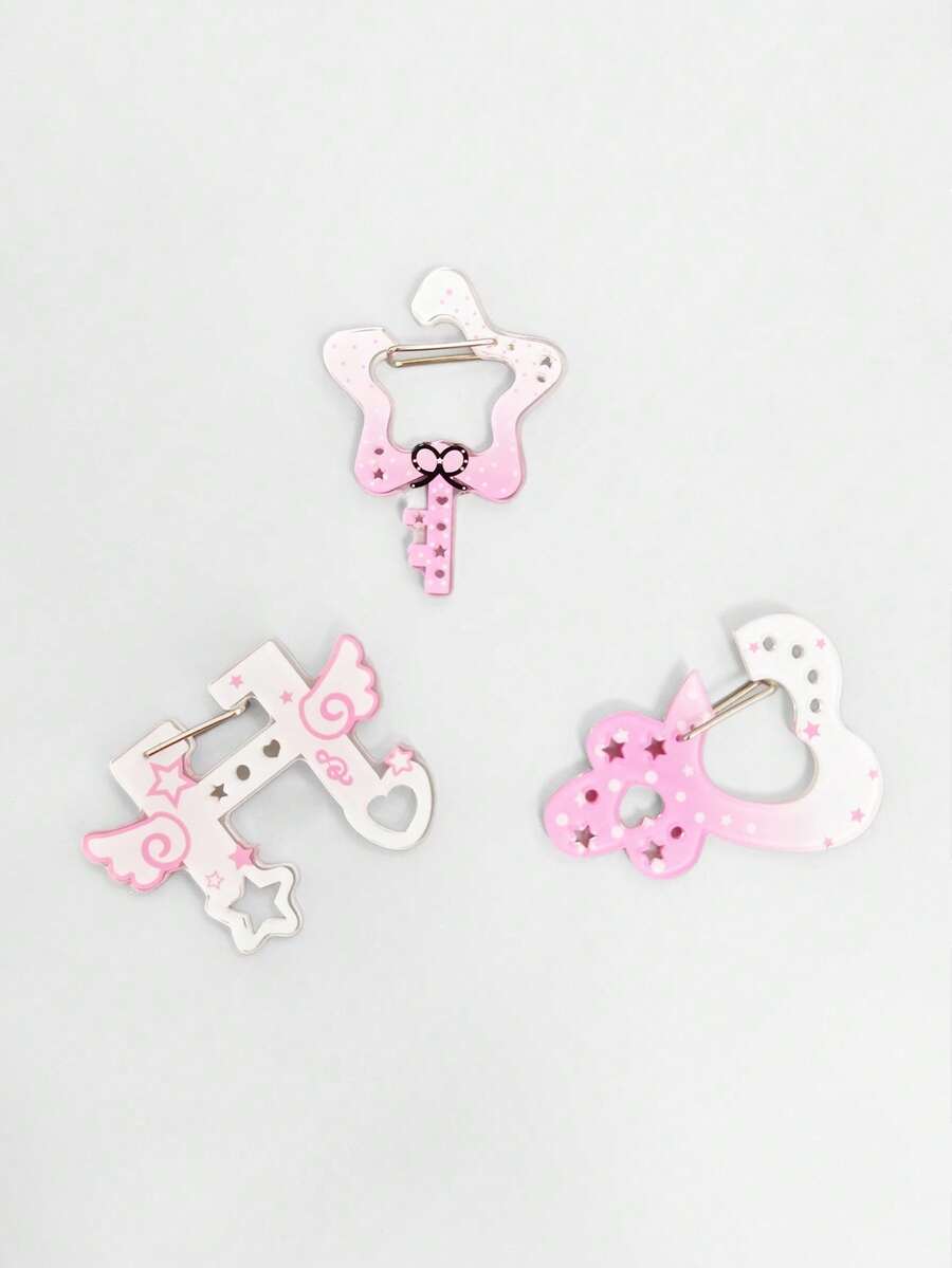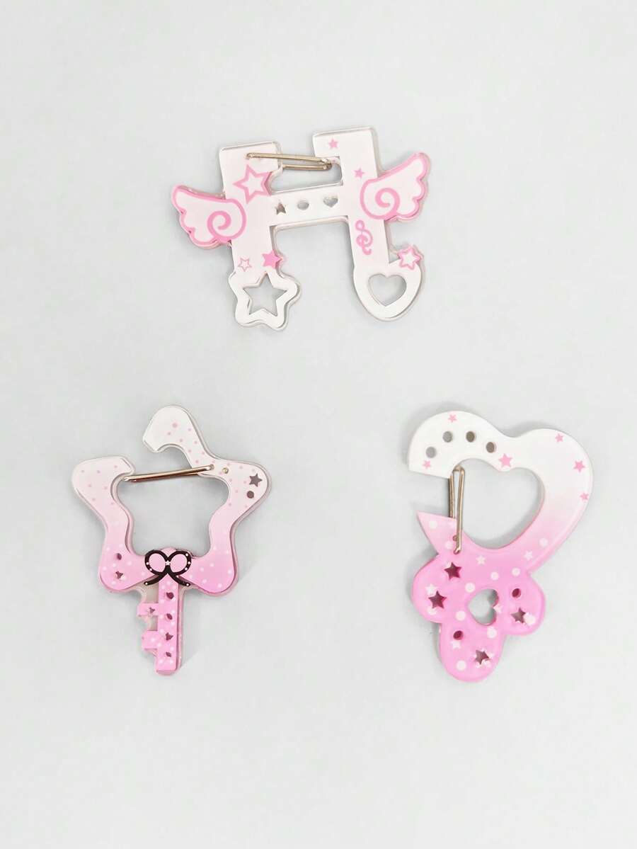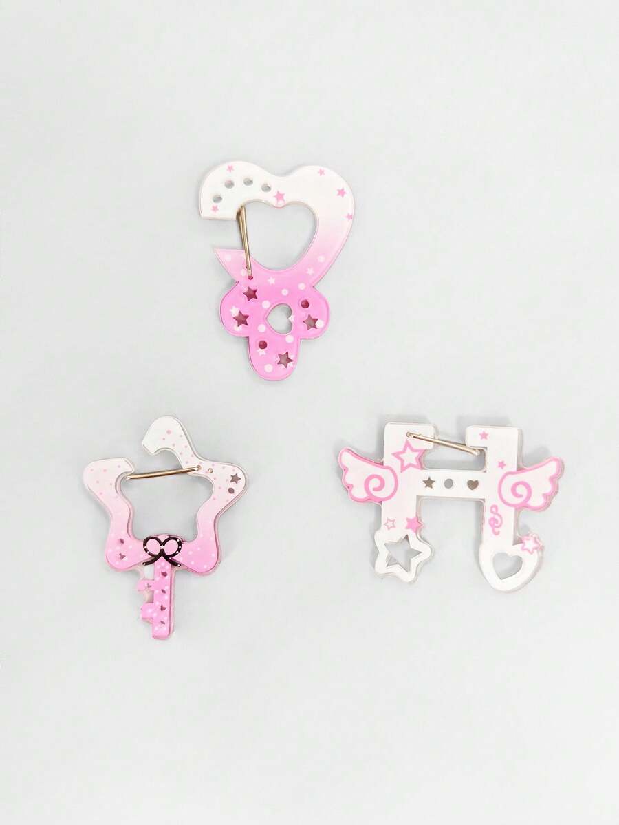 Anime 3 piezas de llaveros con forma de nota musical, corazón y accesorios de mochila con estampado de lunares, alas y moños de estilo Lolita Y2K de acrílico degradado, accesorios versátiles y de alta gama