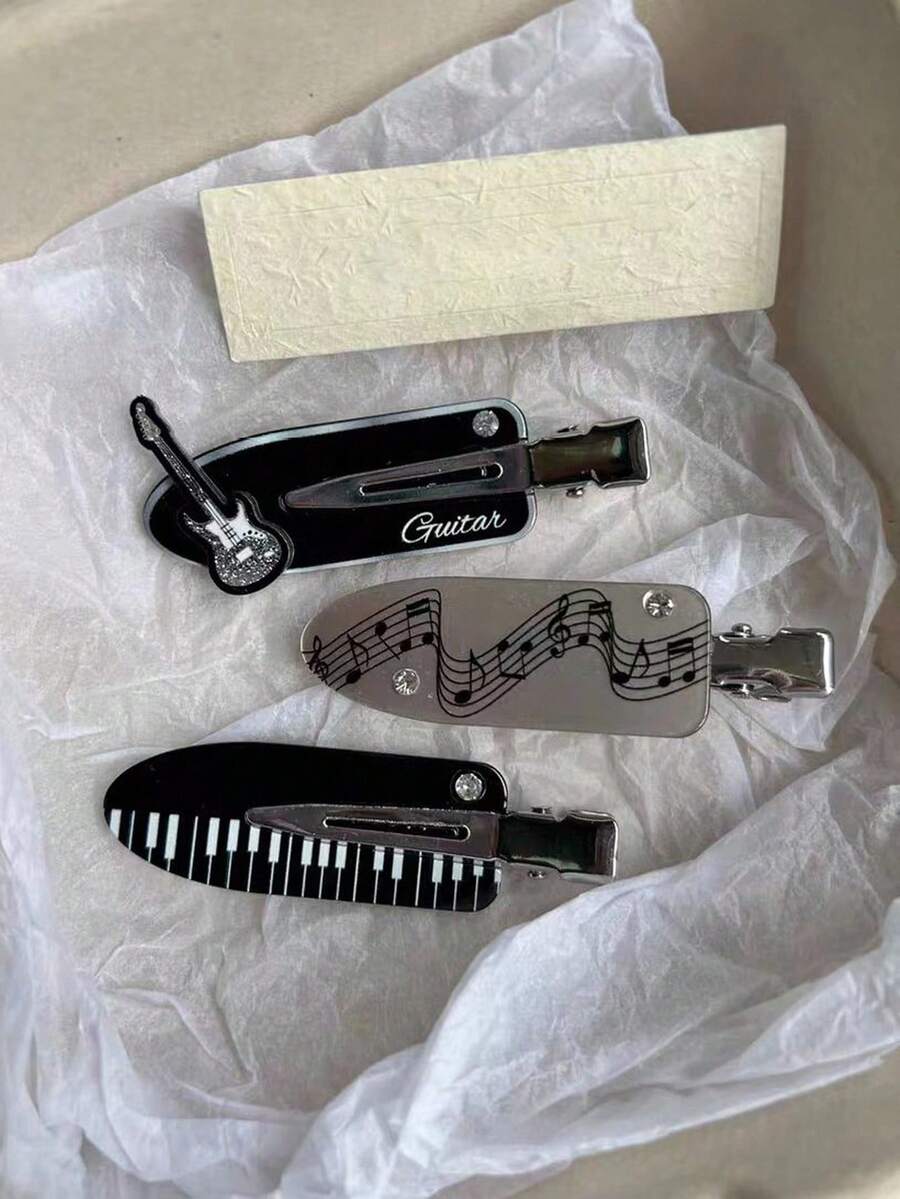 Anime 3 piezas de Pinzas para el cabello con notas musicales impresas, estilo dulce y fresco, adecuadas para la vida diaria, decoración y peinado de festivales de música, pinzas laterales para mujeres, estilo callejero Y2K