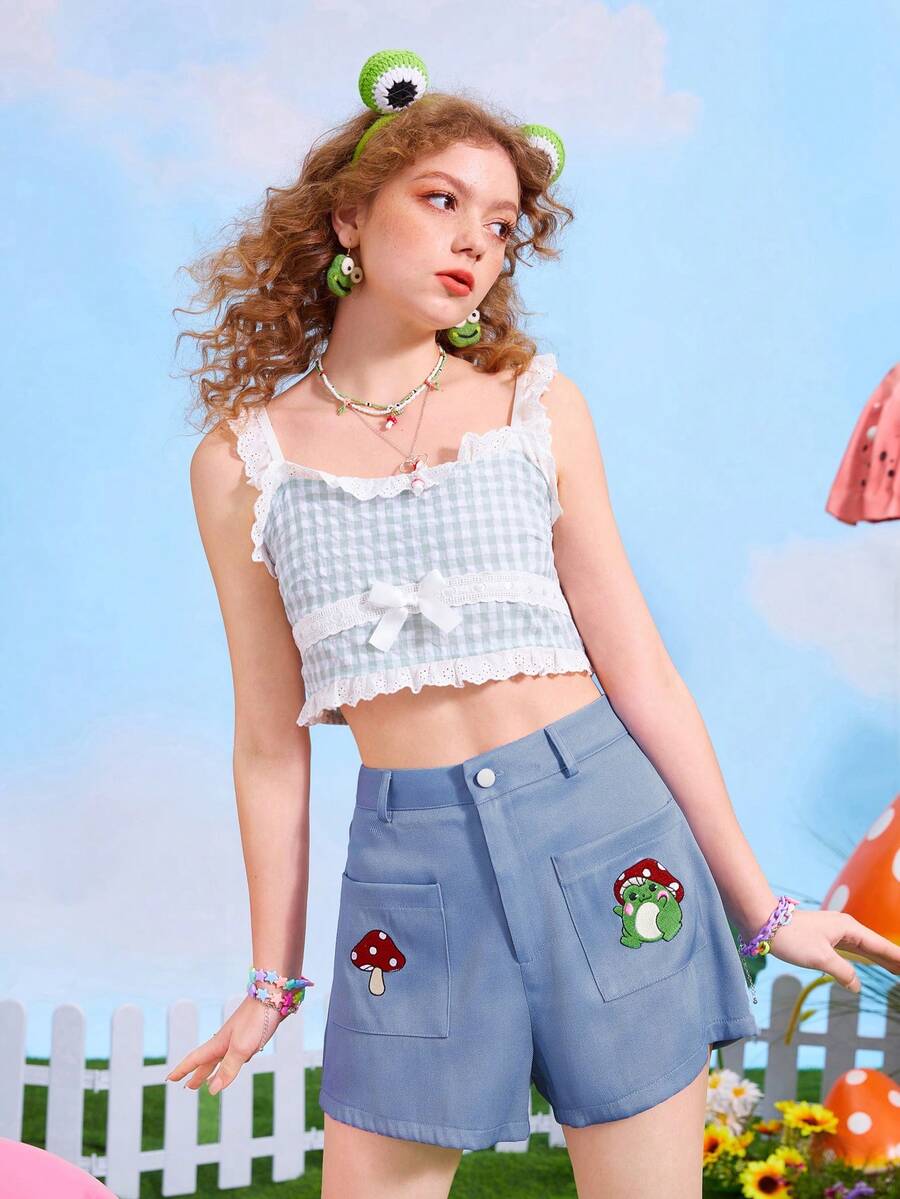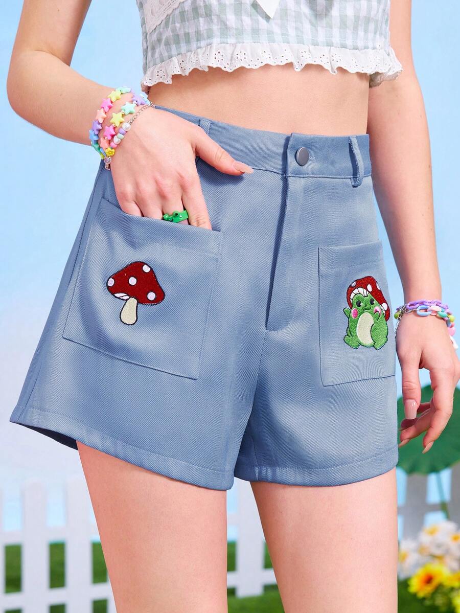 Anime Shorts con doble bolsillo con bordado de seta