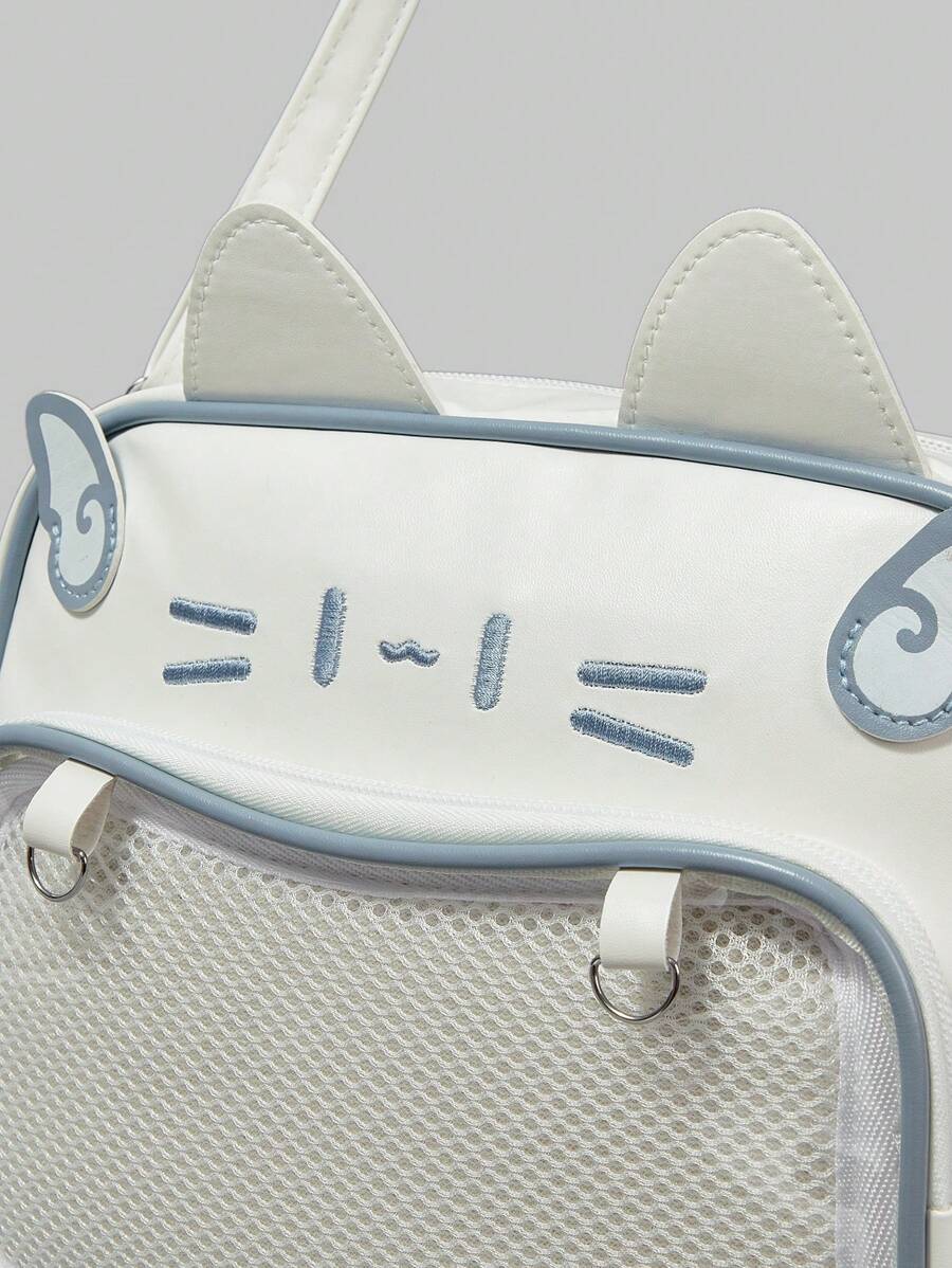 Anime Mochila de uso casual y diario con decoración de oreja de gato en contraste de colores, diseño lindo