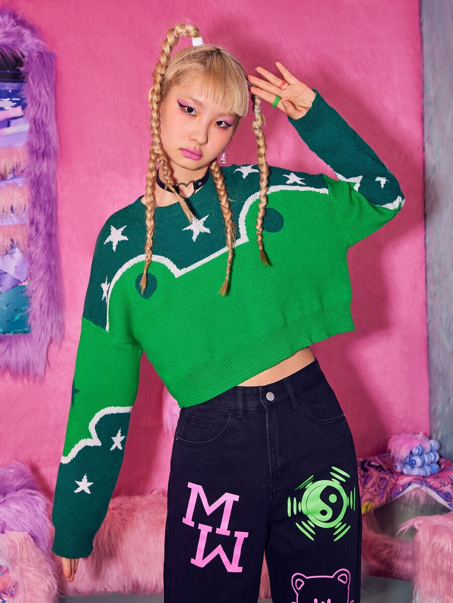 Kawaii Jersey corto con patrón de rana de hombros caídos