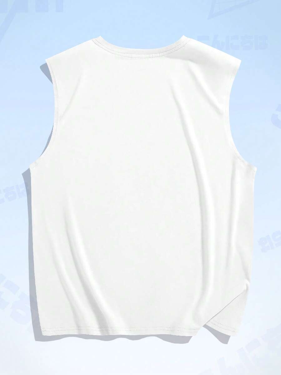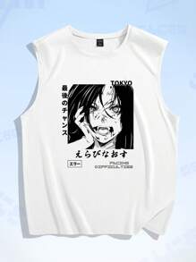 Anime Hombres Top tank algodón con estampado de letra japonesa y figura