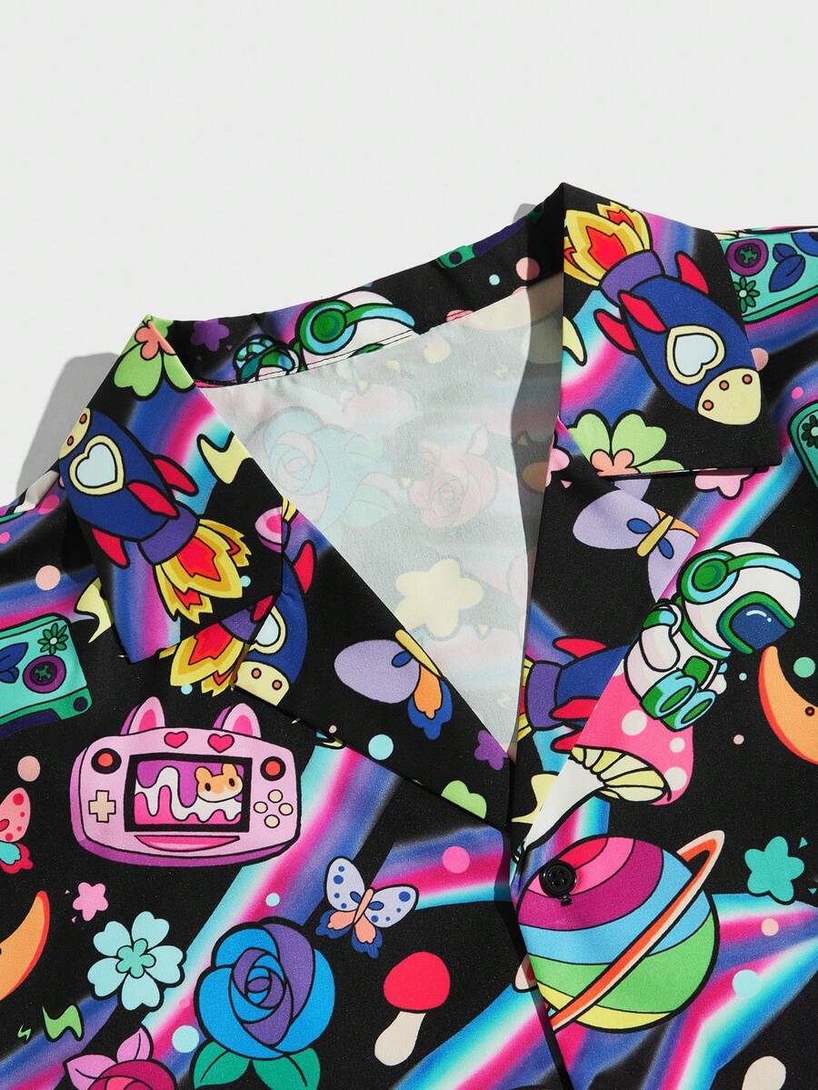 Anime Camisa para hombre estampada en toda la prenda con estilo de los años 2000