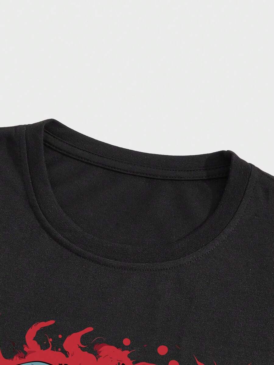 Anime Camiseta escolar con gráfico de letras y cifras japonesas de la era Y2K para hombres