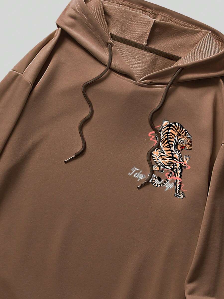Anime Sudadera Con Capucha Y Estampado De Tigre En La Espalda Para Hombre
