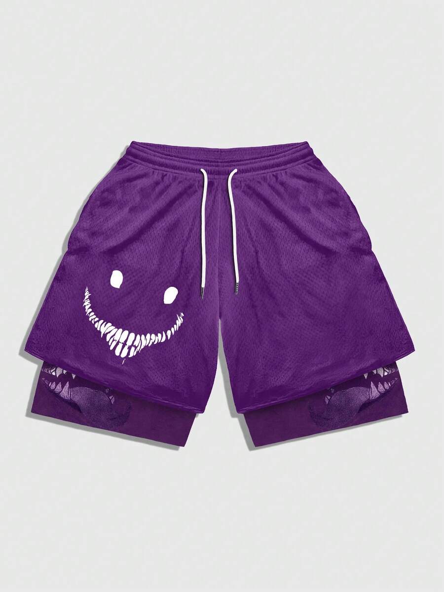 Anime Pantalones cortos casuales de hombre con estampado gráfico y cintura con cordón, para verano