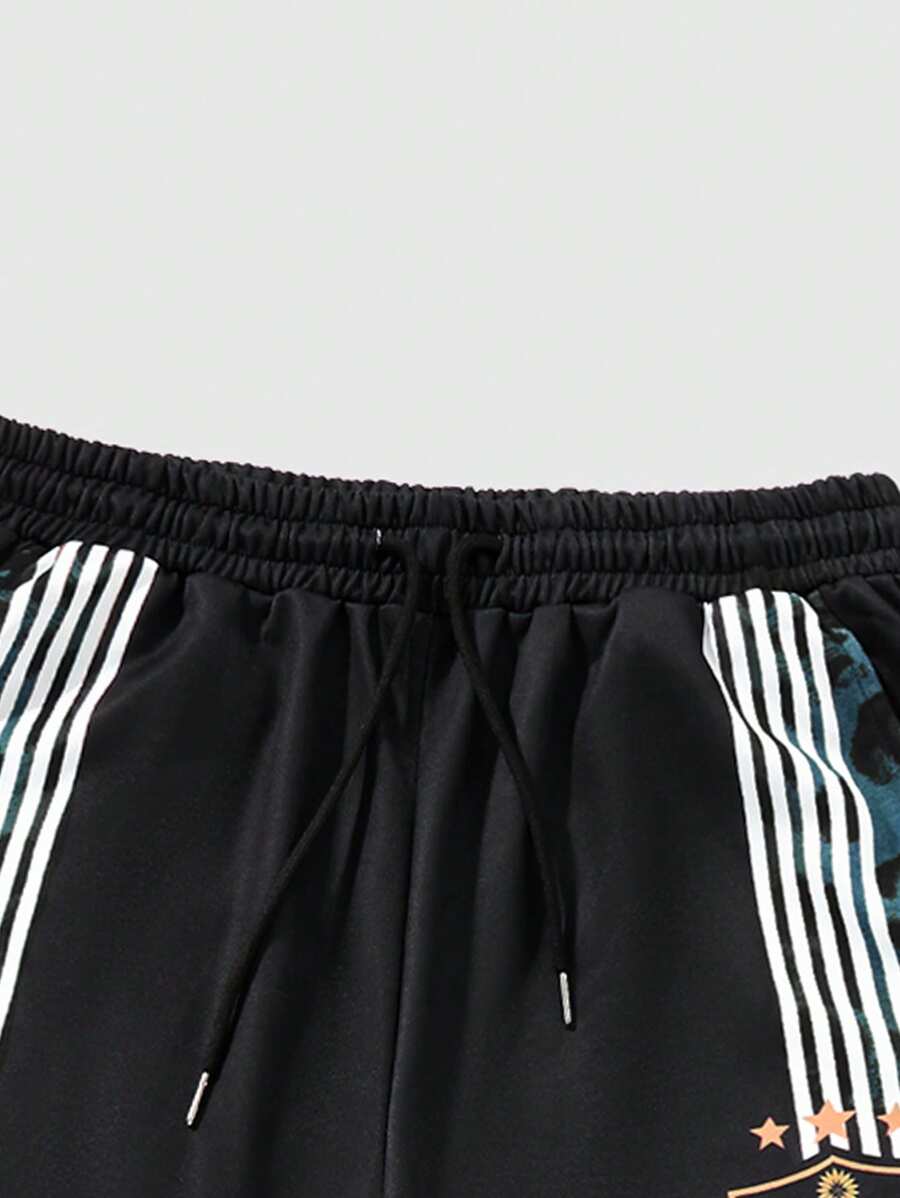Anime Pantalones de chándal sueltos con cordón en la cintura y estampado de letras y leopardo para hombre