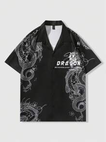 Anime Camisa De Manga Corta Para Hombre Con Estampado De Dragón