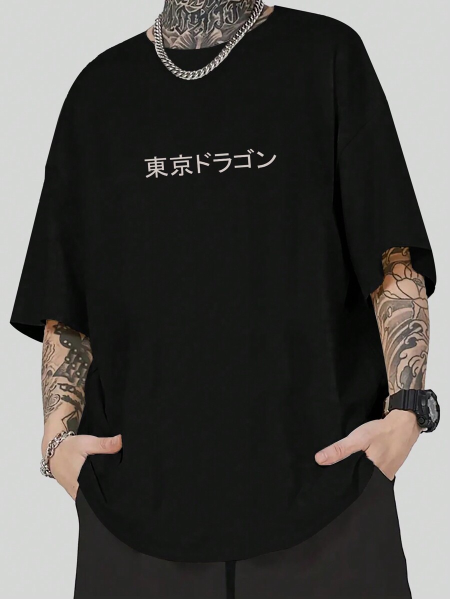 Anime Camiseta de manga corta para hombre con estampado de dragón, adecuada para uso diario en primavera y verano, escuela