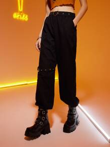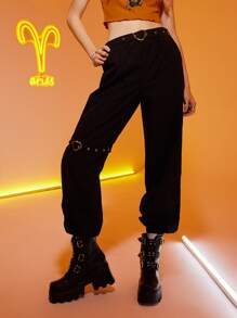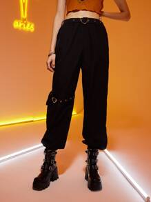 Pantalones zanahoria con ojal con adorno de corazón