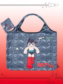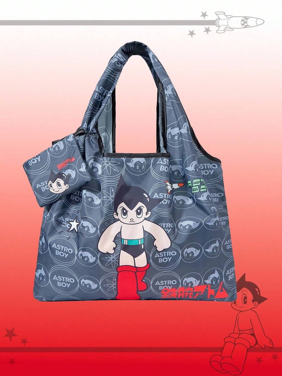 Astro Boy X ROMWE Bolso de tote grande, reversible, de gran capacidad, plegable y portátil con monedero, con gráfico de figura de dibujos animados