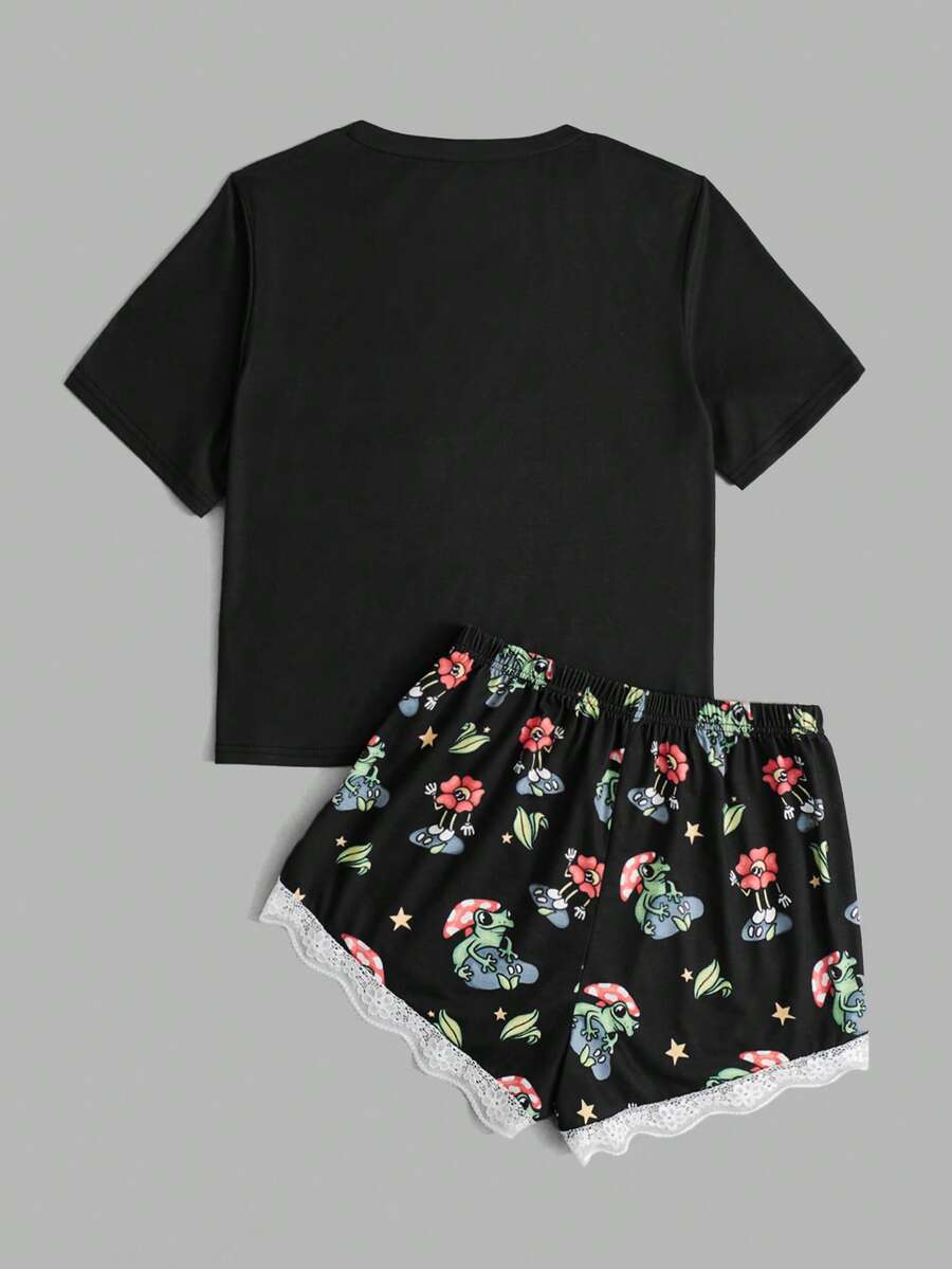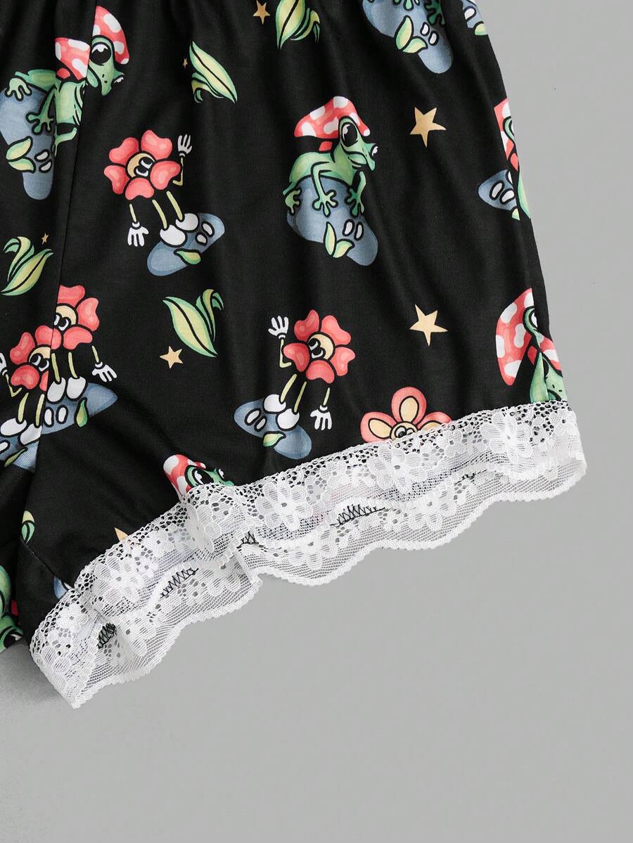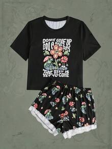 Atosha Set homewear con slogan con estampado floral con encaje en contraste