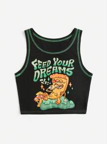 Atosha Top tank ribete con puntada con estampado de dibujos animados