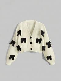 ROMWE Avant Cárdigan con lazo hueco, chaqueta de suéter de punto informal