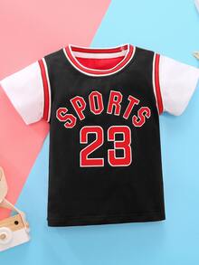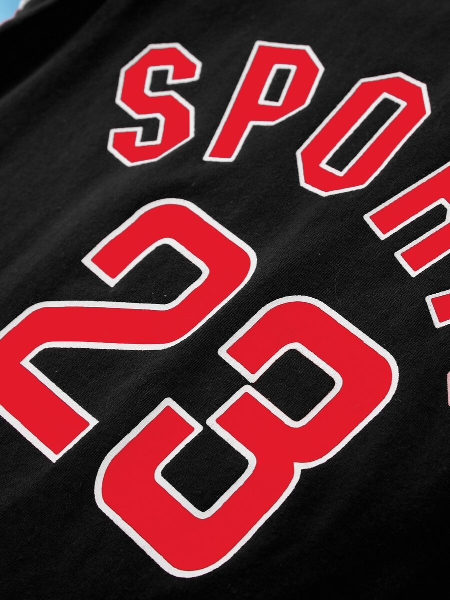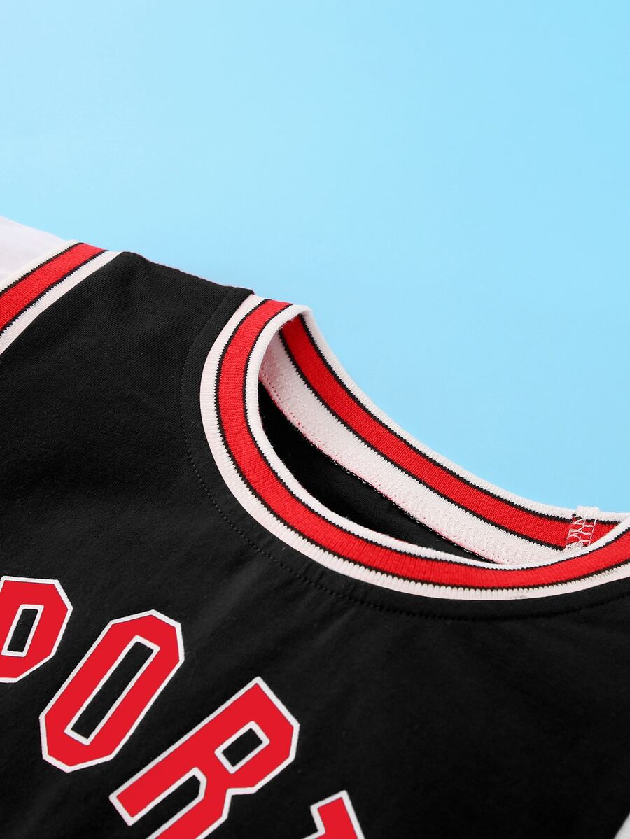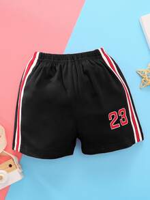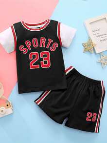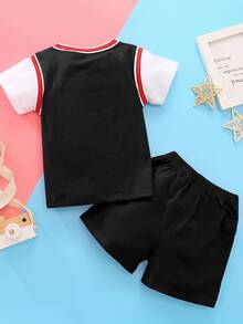 Bebé niño Set Camiseta de baloncesto con estampado de letra de lado de rayas
