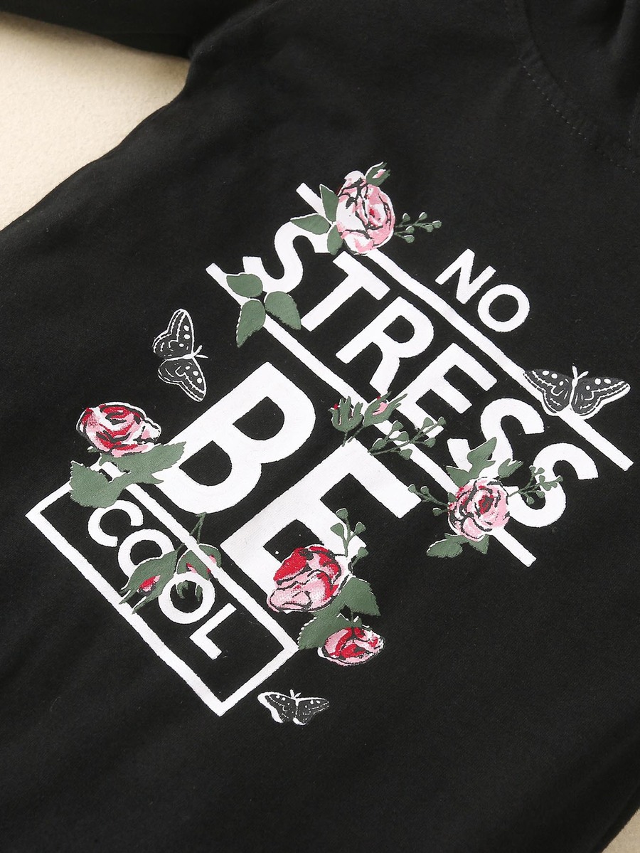 Mono sudadera con estampado floral con slogan