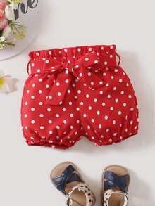 Bebé niña Shorts con cinturón de lunares de cintura con volante