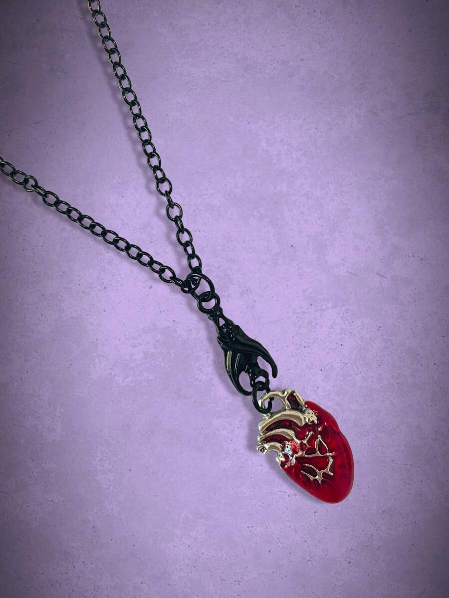 Goth Collar de cadena colgante murciélago & con diseño de corazón