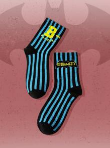 Batman X ROMWE 1 par de calcetines de tripulación divertidos y de moda con estampado de rayas para parejas