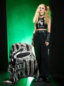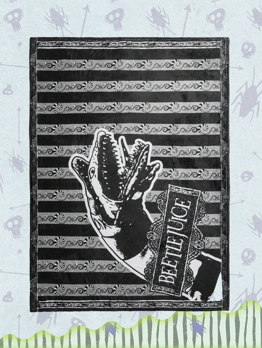 Beetlejuice | ROMWE 1 pieza con letra con estampado de serpiente Manta , punk lavable Manta para sofá y cama