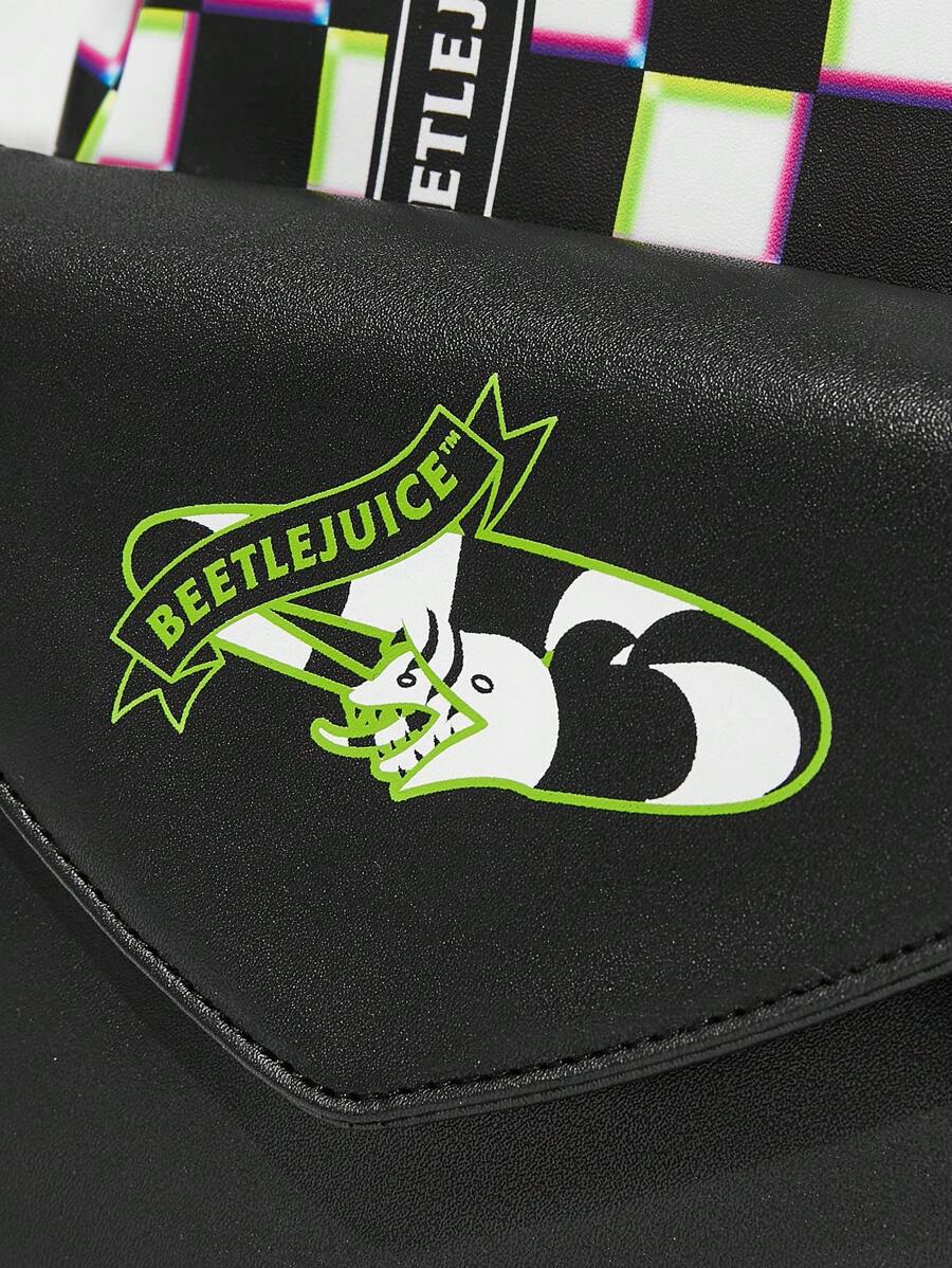Beetlejuice | ROMWE Mochila de estilo punk con estampado de dibujos animados y de tablero de ajedrez