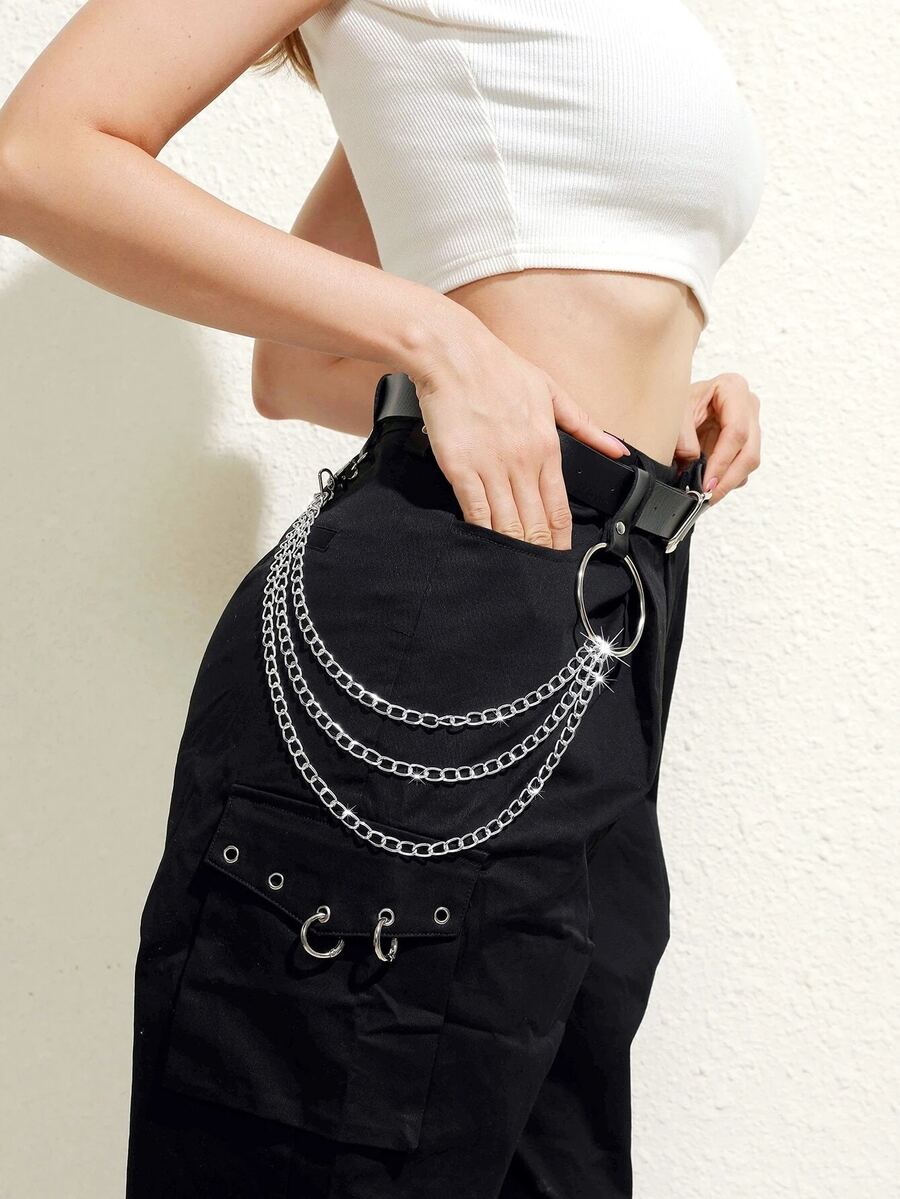 Mujer 1 pieza adorno de anillo Hip hop a capas con cadena