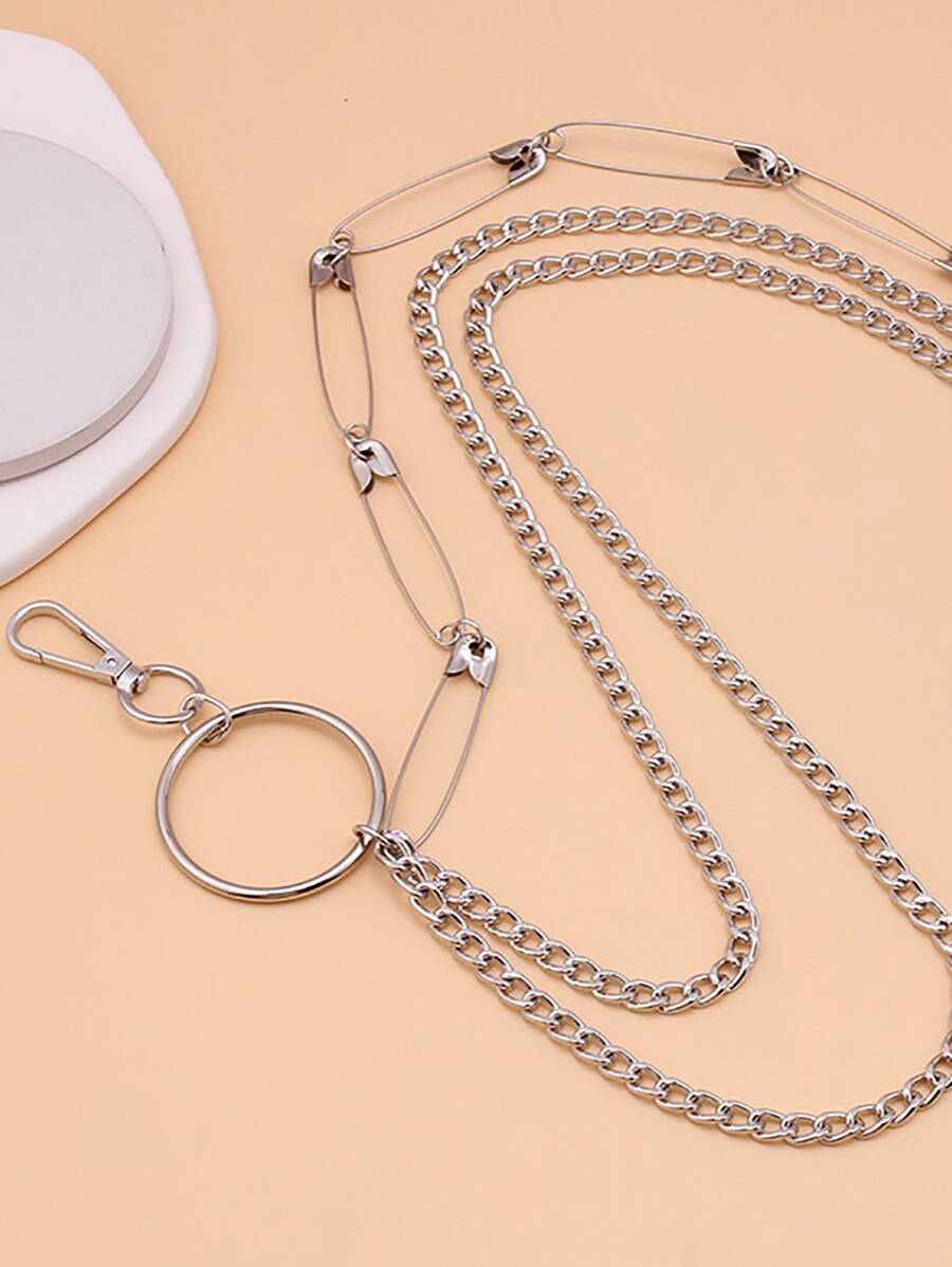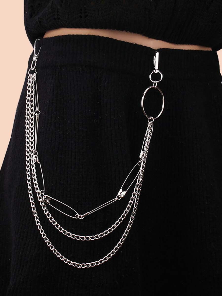 1 pieza Cadena de pantalón con decoración de broche para mujer, estilo hip-hop con capas