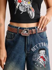 Betty Boop | ROMWE 1 pieza Cinturón versátil y sexy con gráfico de figura de mujer de moda