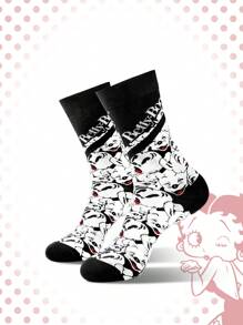 Betty Boop | ROMWE Calcetines de media pantorrilla lindos para mujeres con estampado completo