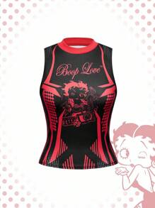 Betty Boop | ROMWE Top de tirantes slim fit con bloqueo de color y figura de dibujos animados