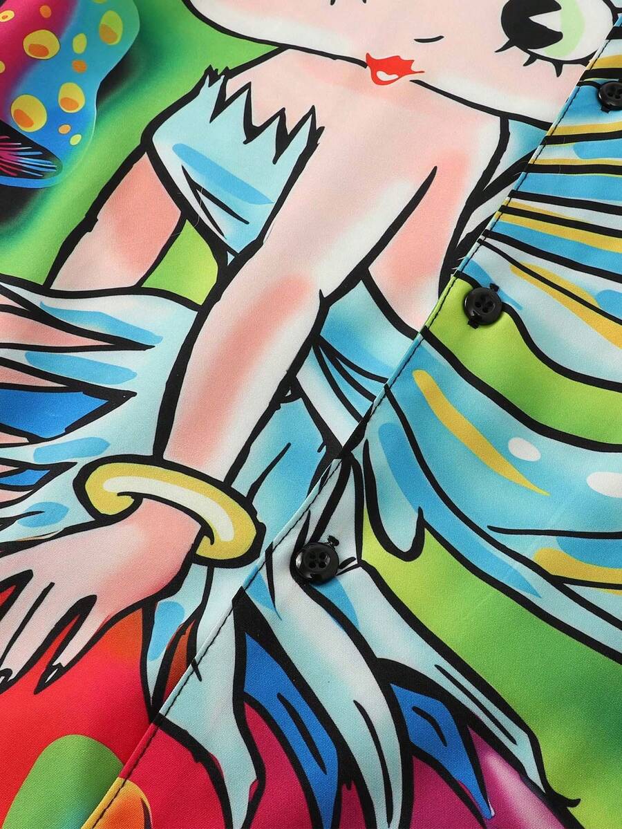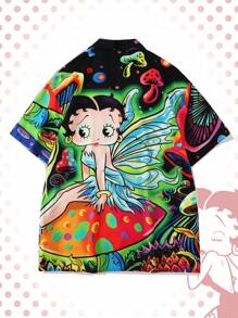 Betty Boop | ROMWE Camisa hawaiana con figura de dibujo animado en el cuello de solapa, para hombre, para el verano, la escuela
