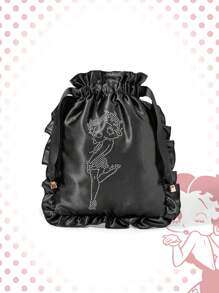 Betty Boop | ROMWE Bolsa de viaje organizadora con cordón y tachuelas, bolsa de maquillaje, regalo