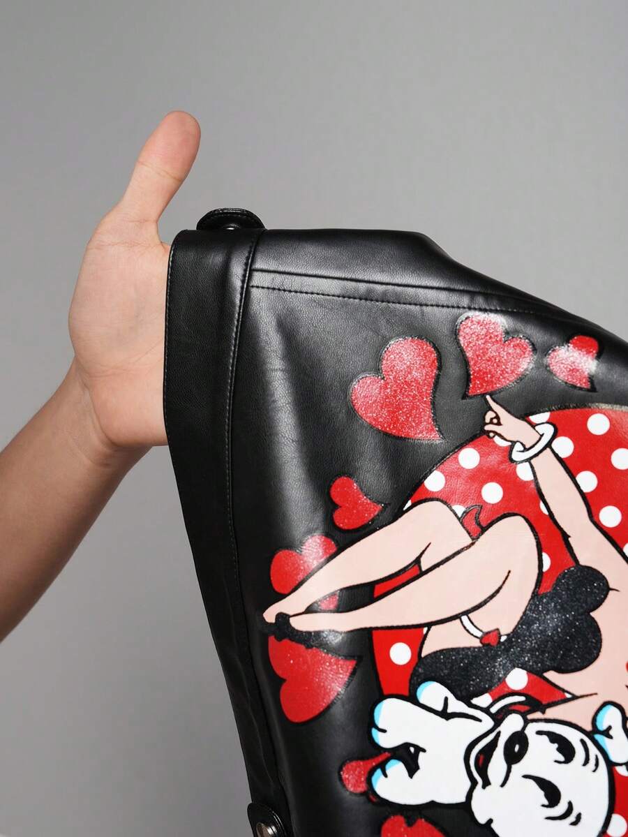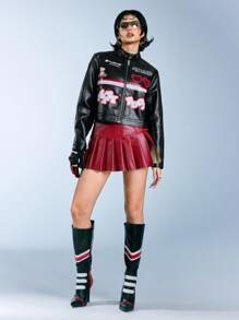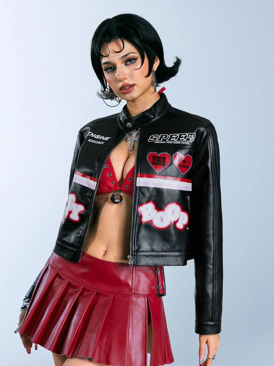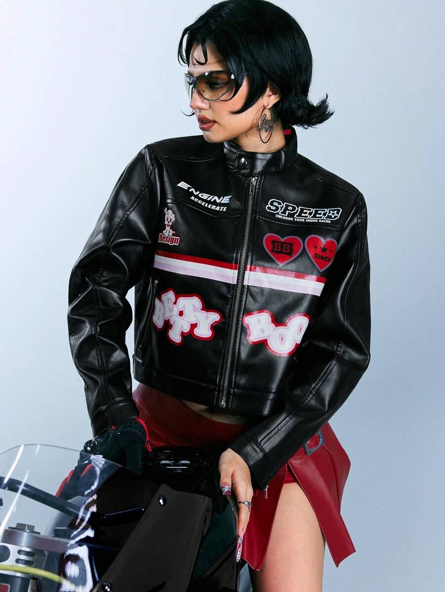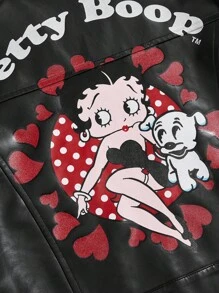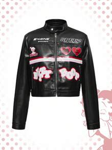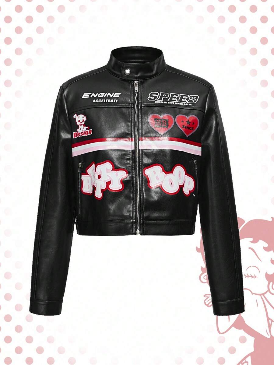 Betty Boop | ROMWE Chaqueta con cremallera y gráfico de letras casual para mujer