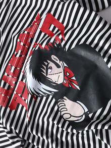 Black Jack X ROMWE Camiseta de manga corta con patrón de rayas para hombres, adecuada para uso diario, primavera/verano