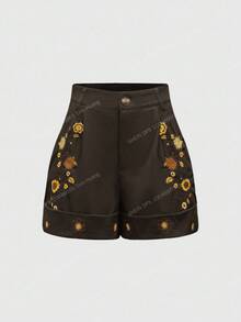 Hippie Shorts sueltos con estampado floral y dobladillo de volantes en estilo bohemio para mujeres
