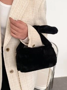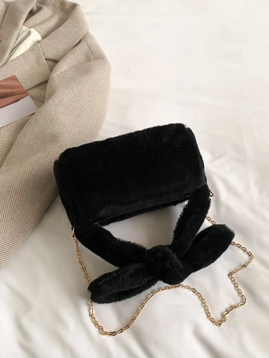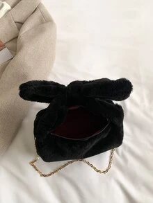 Bolso tipo cubo esponjoso, suave y difuso con decoraciónación de lazo de felpa para niñas, mujeres, estudiantes universitarios, novatos y trabajadores administrativos para el trabajo, la oficina, los desplazamientos, para otoño e invierno, invierno cálido
