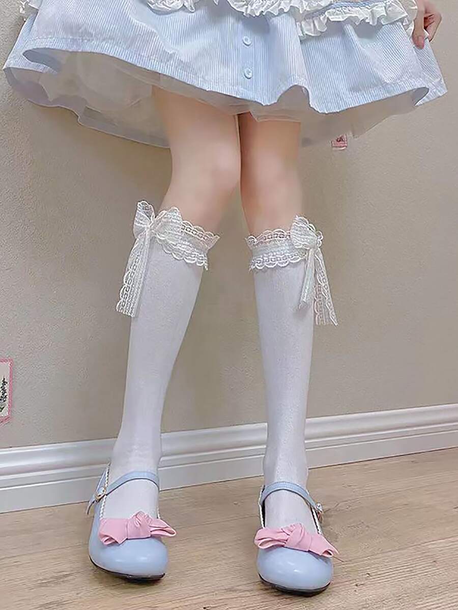 Calcetines altos con diseño de lazo ribete con encaje