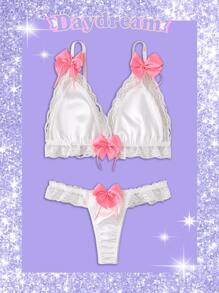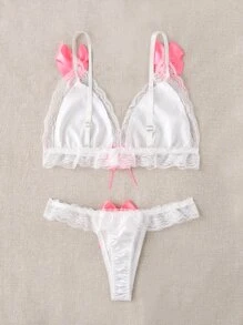 Set de lencería con lazo con encaje ribete en abanico