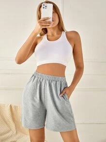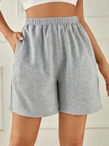 Shorts deportivos transpirable suave con bolsillo oblicuo