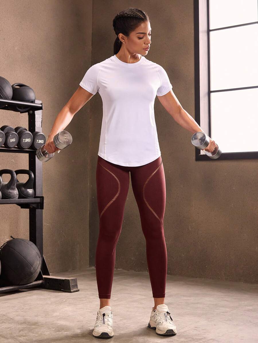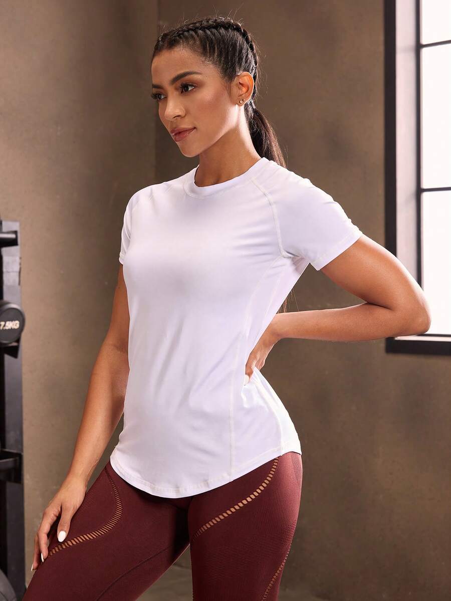 Camiseta deportiva con torsión frontal transpirable, camiseta de compresión para gimnasio para mujeres