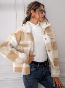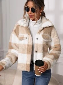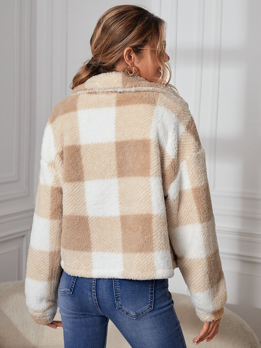 Cazadora teddy de cuadros de hombros caídos