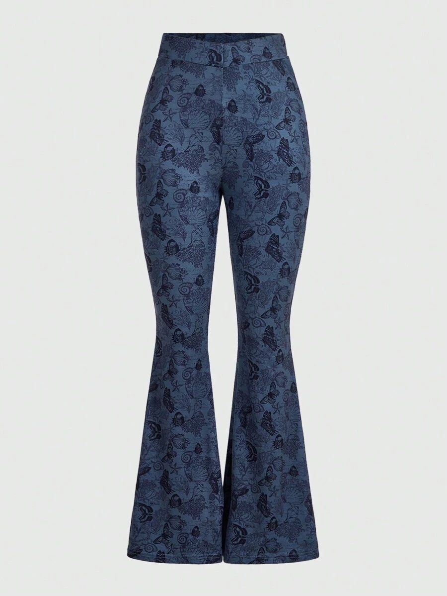Fairycore Pantalones acampanados con mariposa & con estampado de concha
