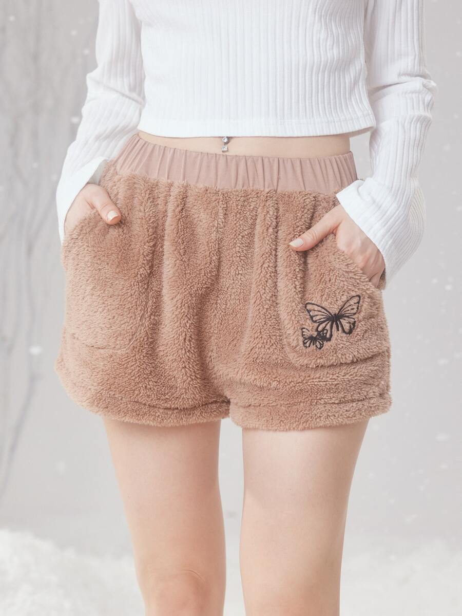 Fairycore Shorts con bordado de mariposa teddy
