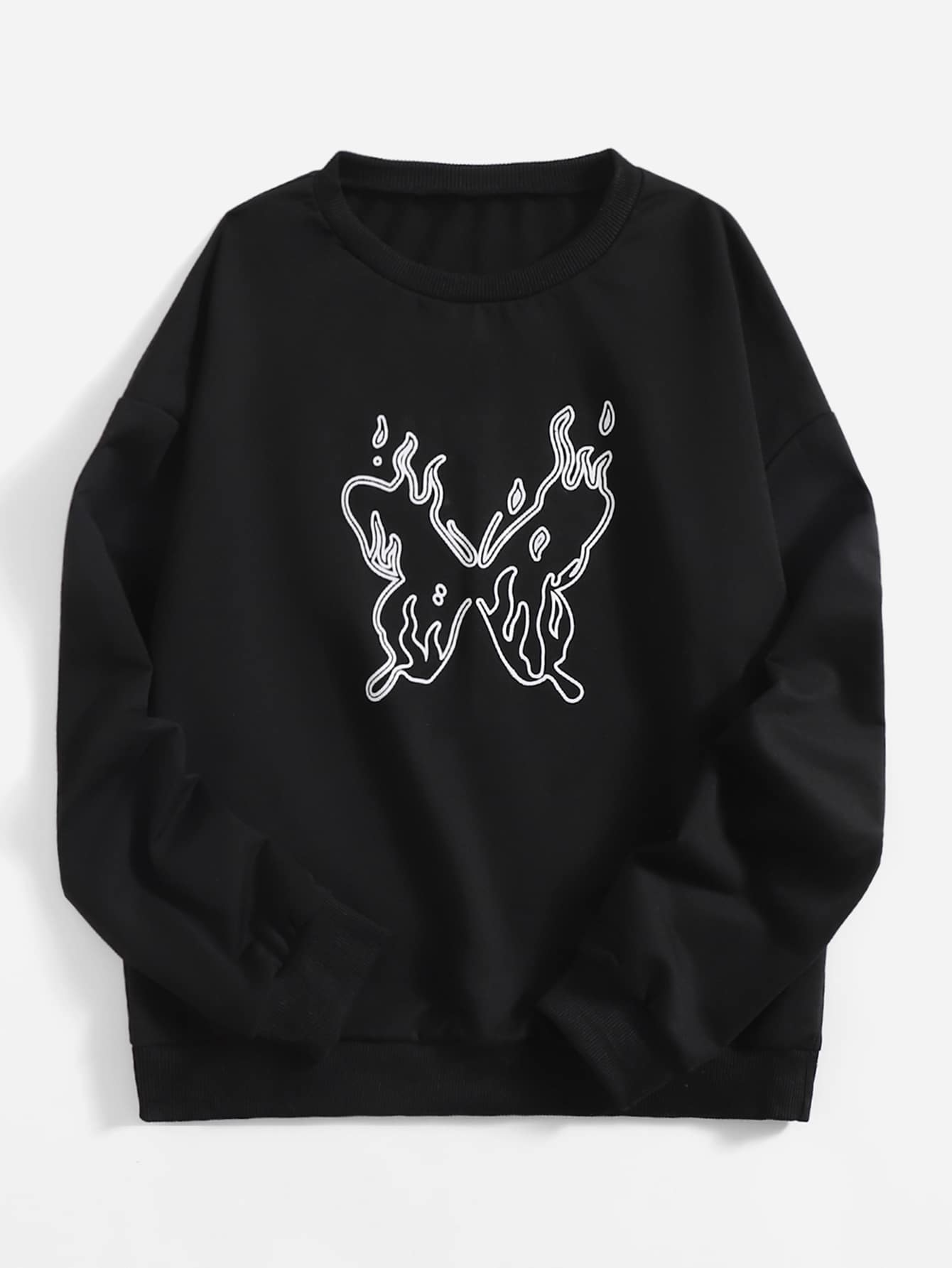 Sudadera con estampado de mariposa de hombros caídos