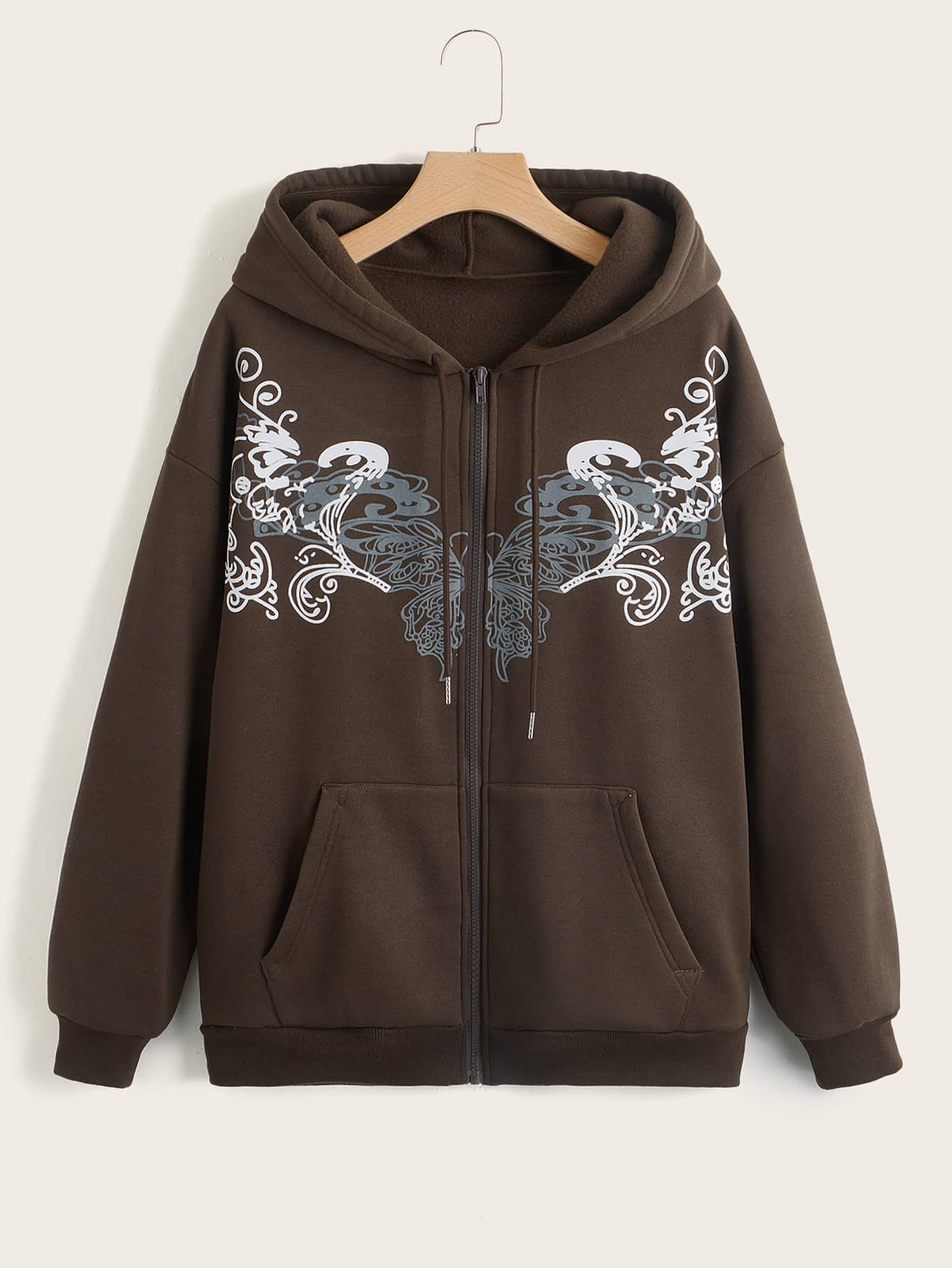 Capucha térmica con estampado de mariposa con cremallera con bolsillo con cordón
