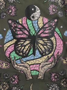 Camiseta de tirantes con gráfico de mariposa y letra con pespunte