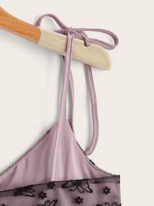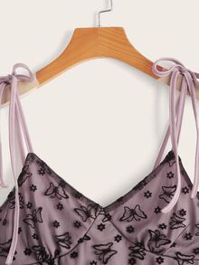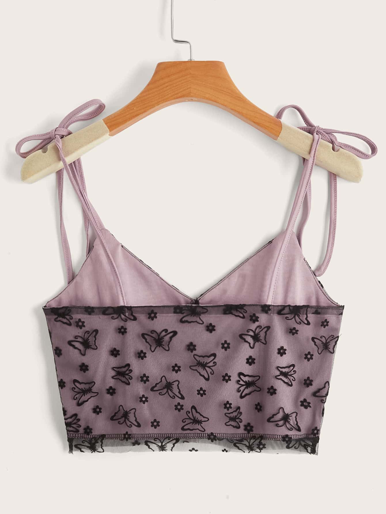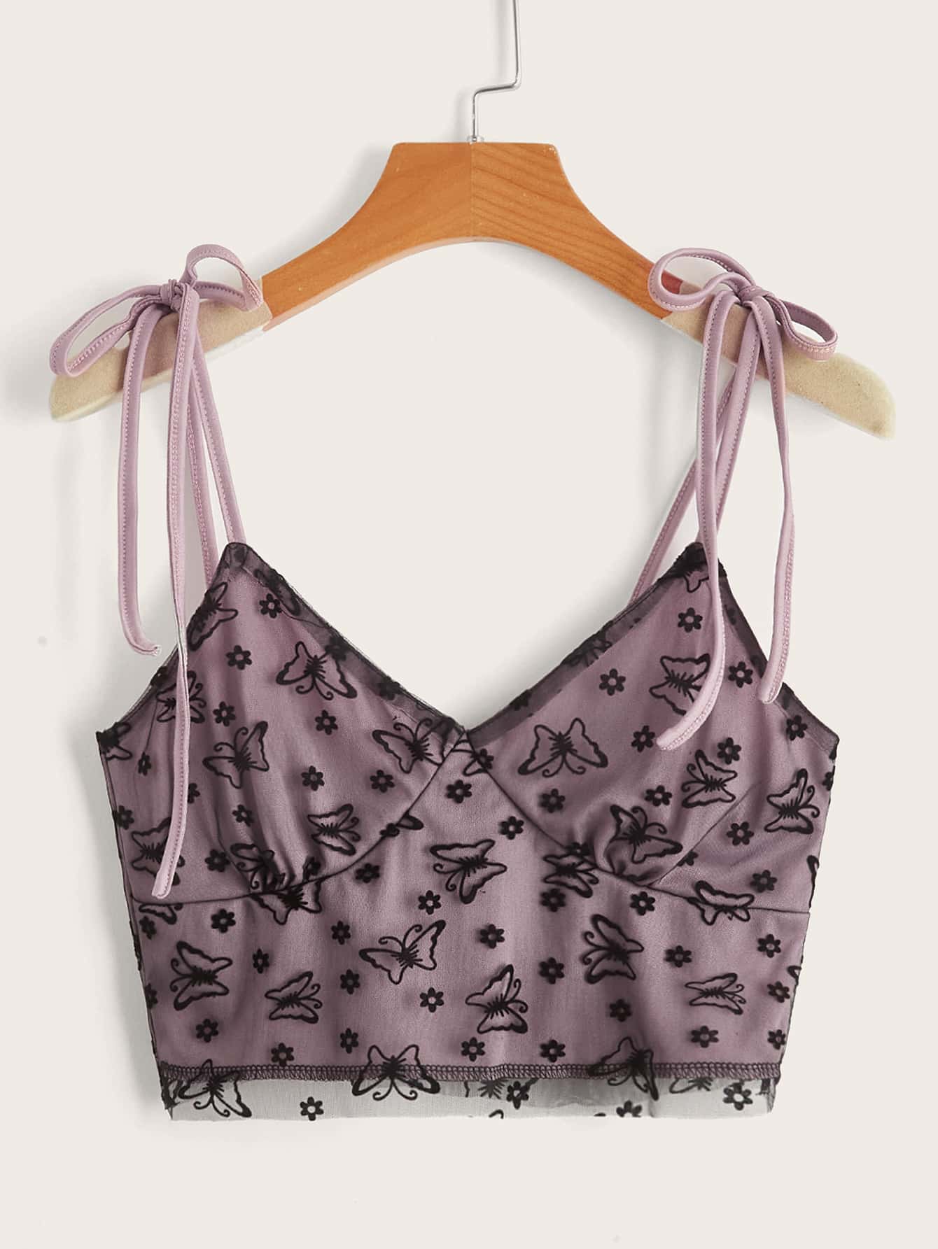 Top de tirantes con estampado de mariposa de hombros con cordón