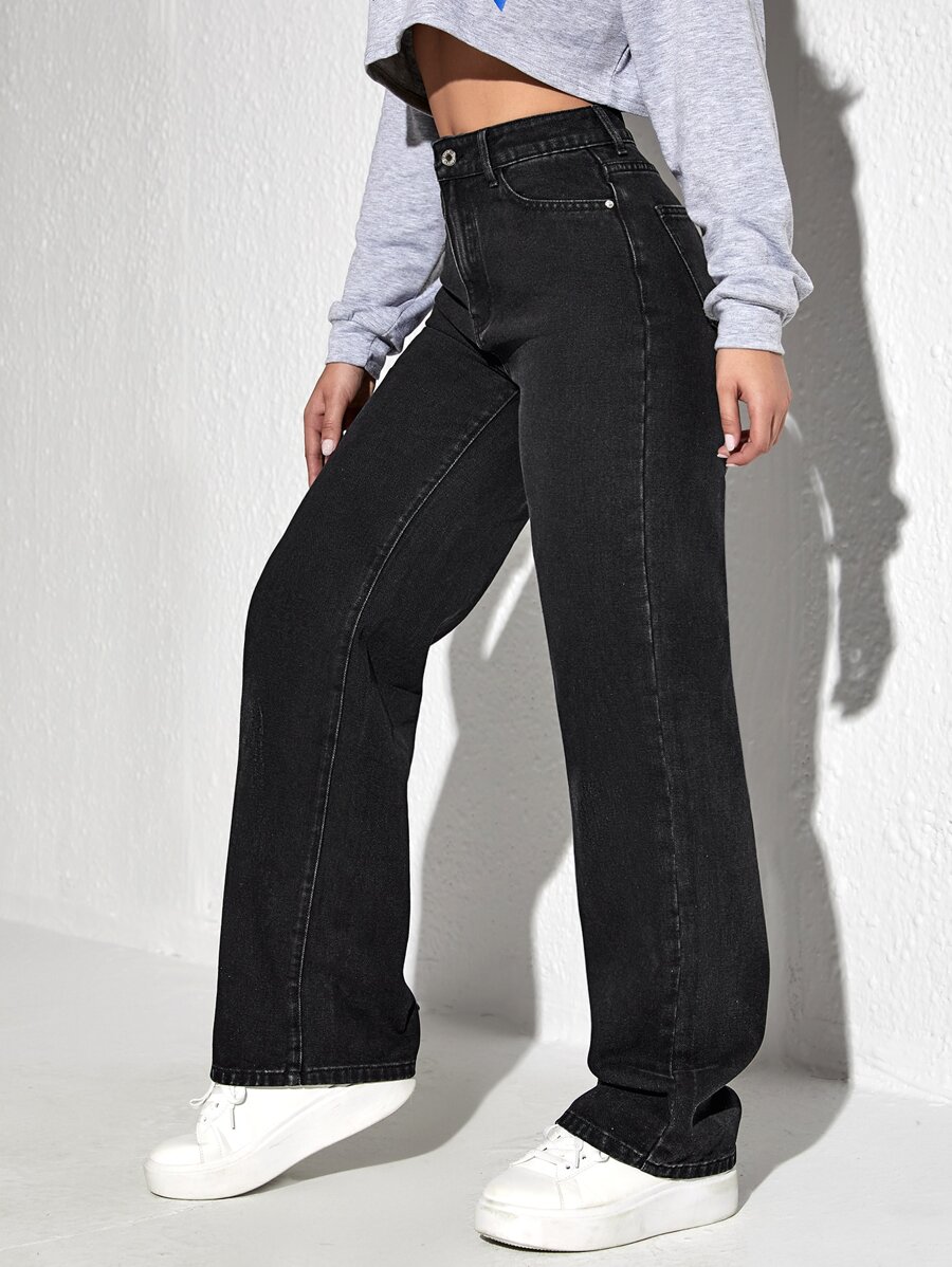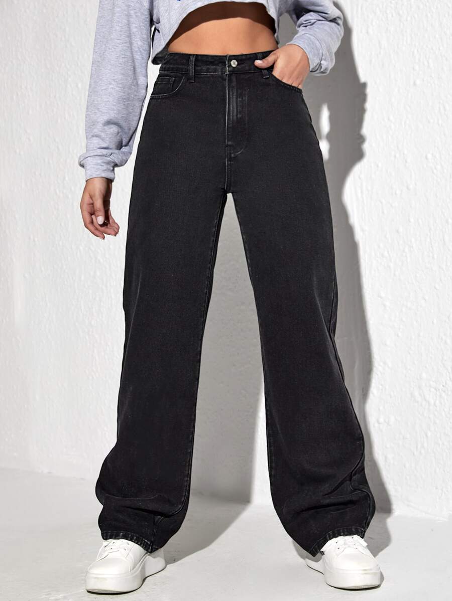 Jeans con estampado de mariposa de pierna ancha
