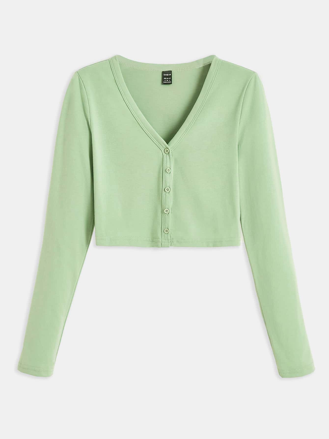 Top Corto Manga Larga Con Botones En La Parte Delantera