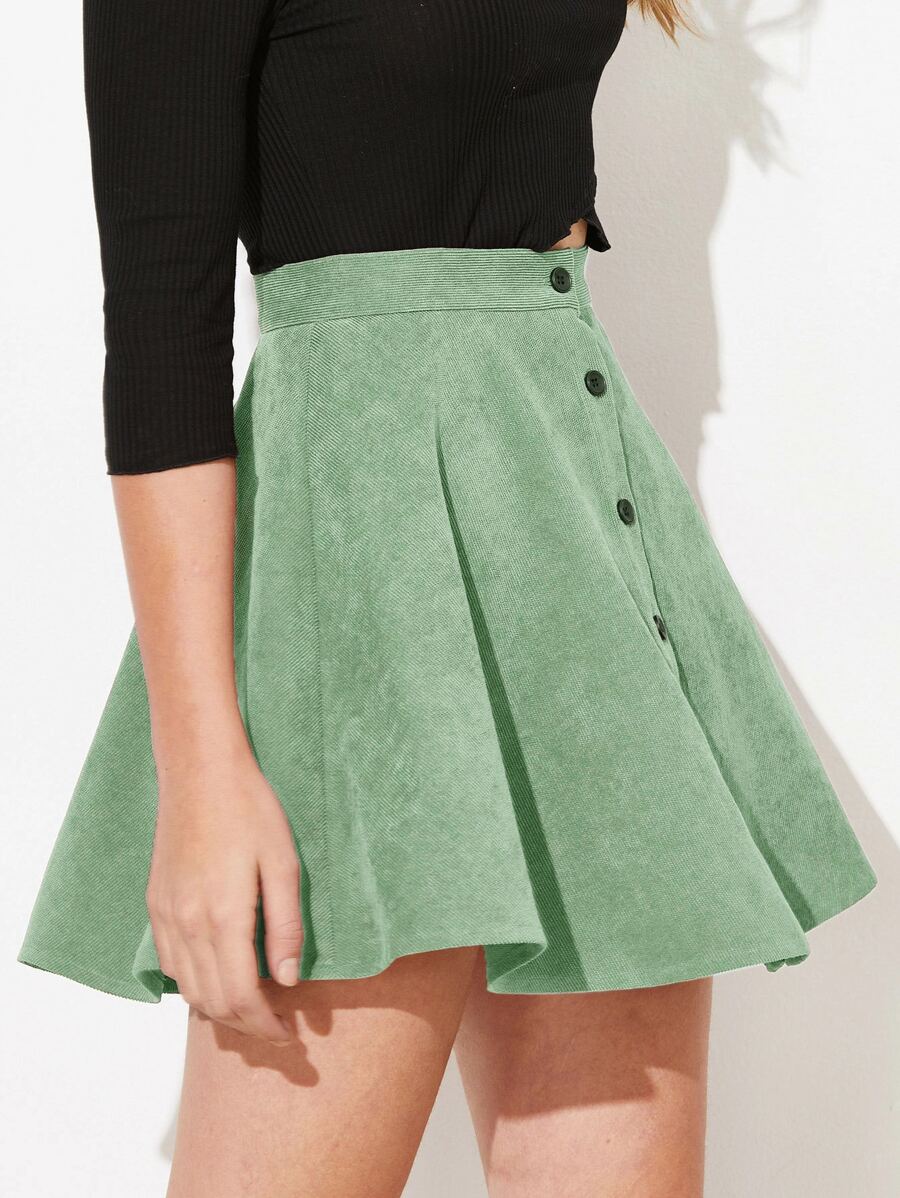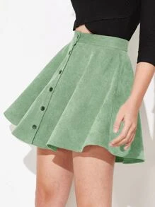 Falda de pana amplia con botón